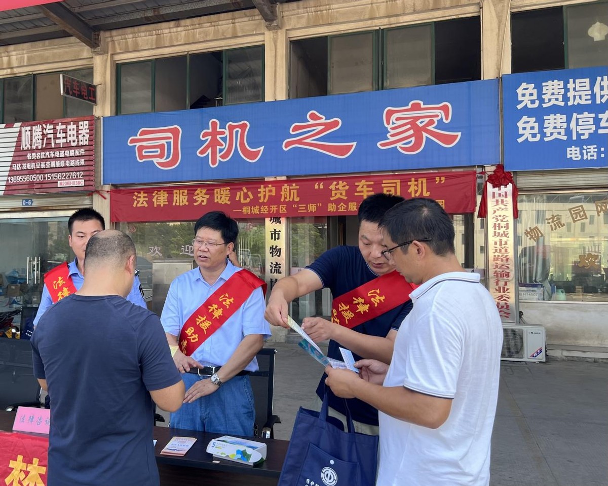 为进一步关心关爱新业态劳动者,提升新业态劳动者的幸福感、安全感、获得感,近日,桐城经开区组织区“三师”助企服务团,联合市总工会、市司法局等相关部门深入飞腾物流园开展“法律服务暖心护航‘货车司机’”公益活动,为货车司机免费提供法律咨询、法律援助等服务,更好地维护和保障他们的合法权益,并为他们送上了防暑降温慰问礼包。