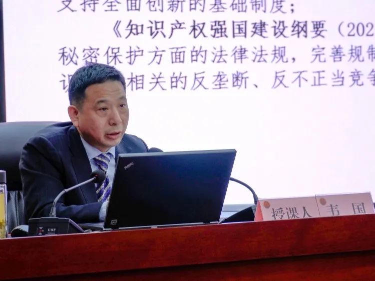 培训中,韦国主任围绕“商业秘密的管理与保护”这一主题,从商业秘密及其资产属性、商业秘密的管理、?;な道?、?;ぬ逑?、行政?;ぁ⑿淌卤;さ?方面向参训学员做了内涵丰富、重点突出、法学理论功底深厚的精彩讲授。
