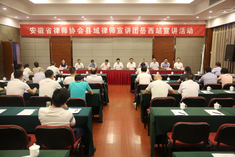 8月7日—9日,安徽省律师协会县域律师宣讲团在望江县和岳西县开展宣讲活动。安徽省律师协会副会长张晓健、常务理事韦国、县域律师工作委员会常务副主任许翔及副主任盛勇、周光成率队开展宣讲活动,安庆市司法局调研员徐松涛、律师工作科科长杨维舟,安庆市律师协会副会长姚正祥、黄益,岳西县司法局长陈昌杰,望江县司法局副局长徐舰出席宣讲活动。